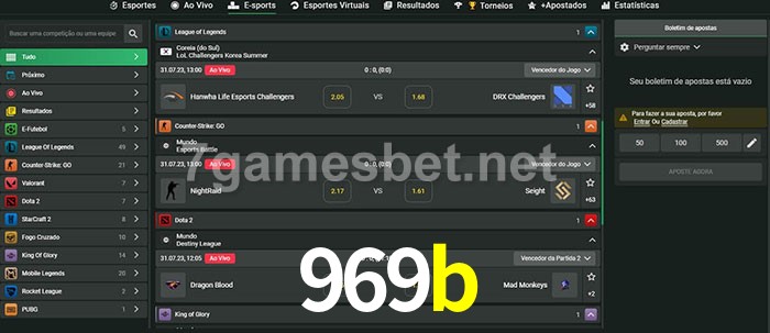 A aposta 969b oferece aos jogadores a experiência mais conveniente de apostas em eSports!